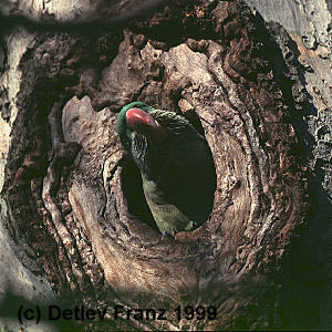 14.6.1999 dwie młode aleksandretty wyglądają z dziupli,